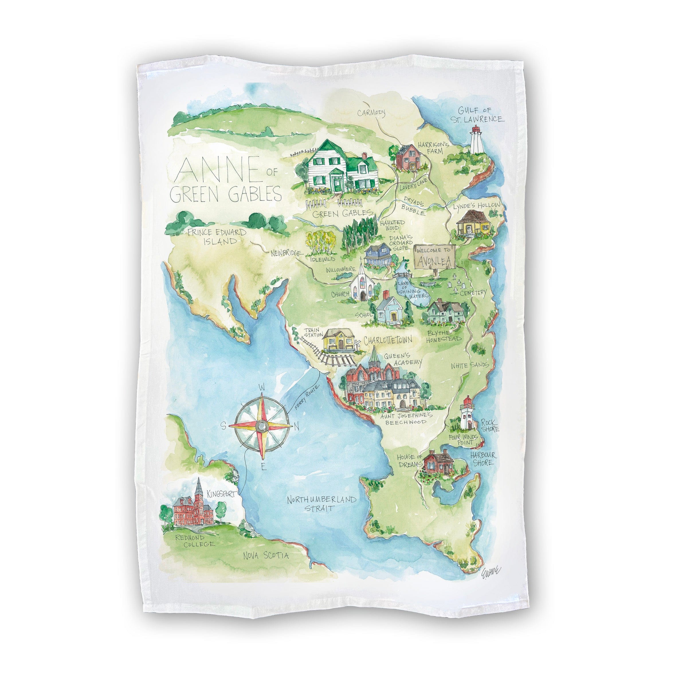Featuring landmarks and landscape filled with the lush beauty of Prince Edward Island, this painting is a heartfelt tribute to the beloved classic. Its vibrant watercolor details and nostalgic charm make it a perfect addition to your kitchen or bath.