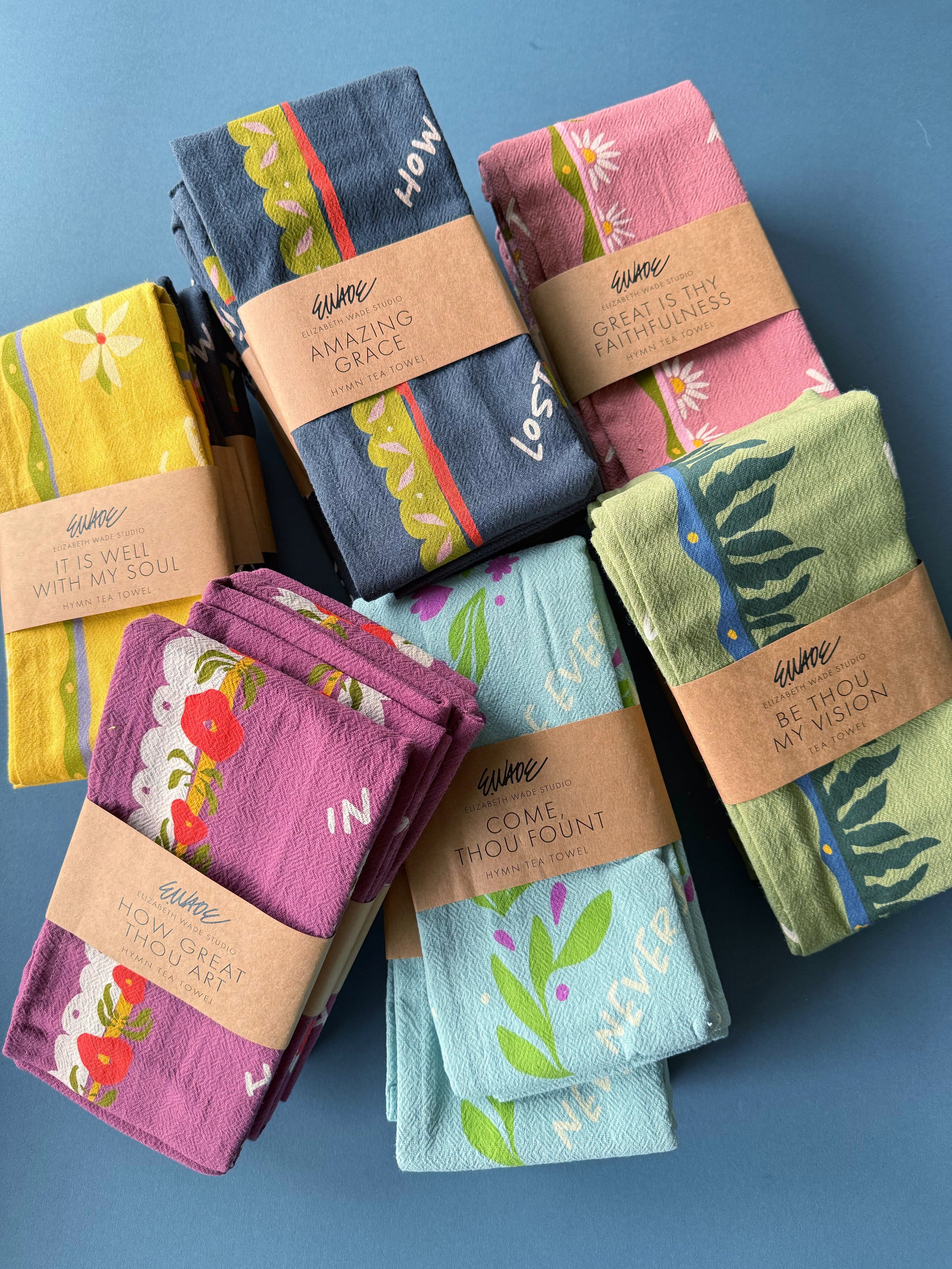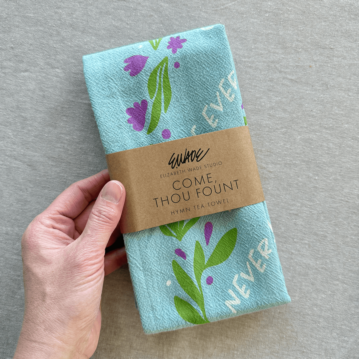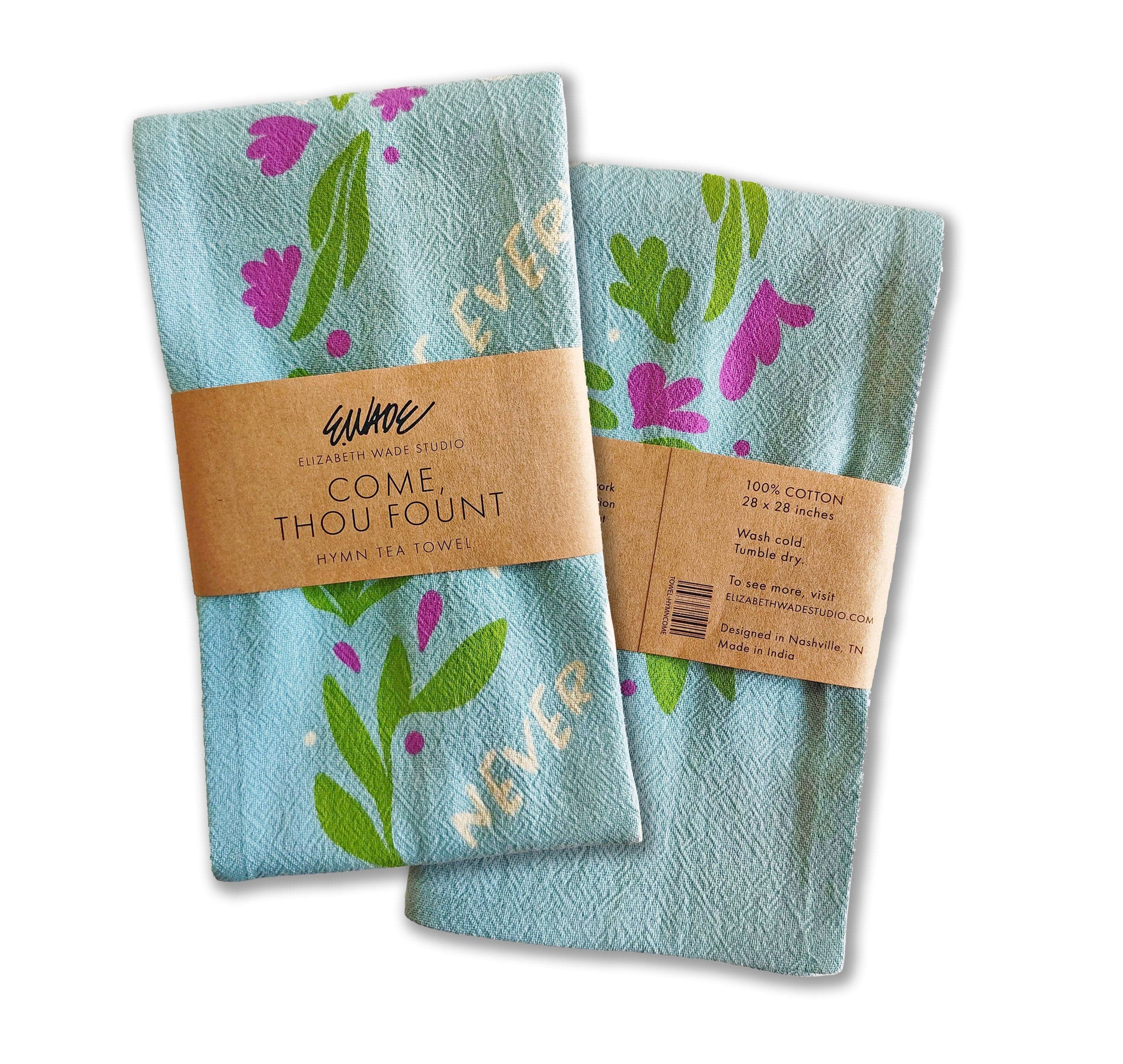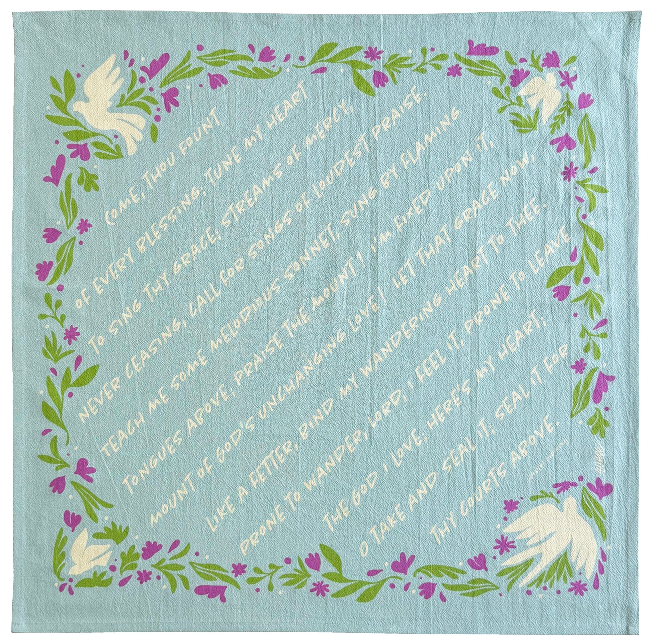 NEW! Come, Thou Fount Tea Towel is new this winter featuring the words from this classic hymn.