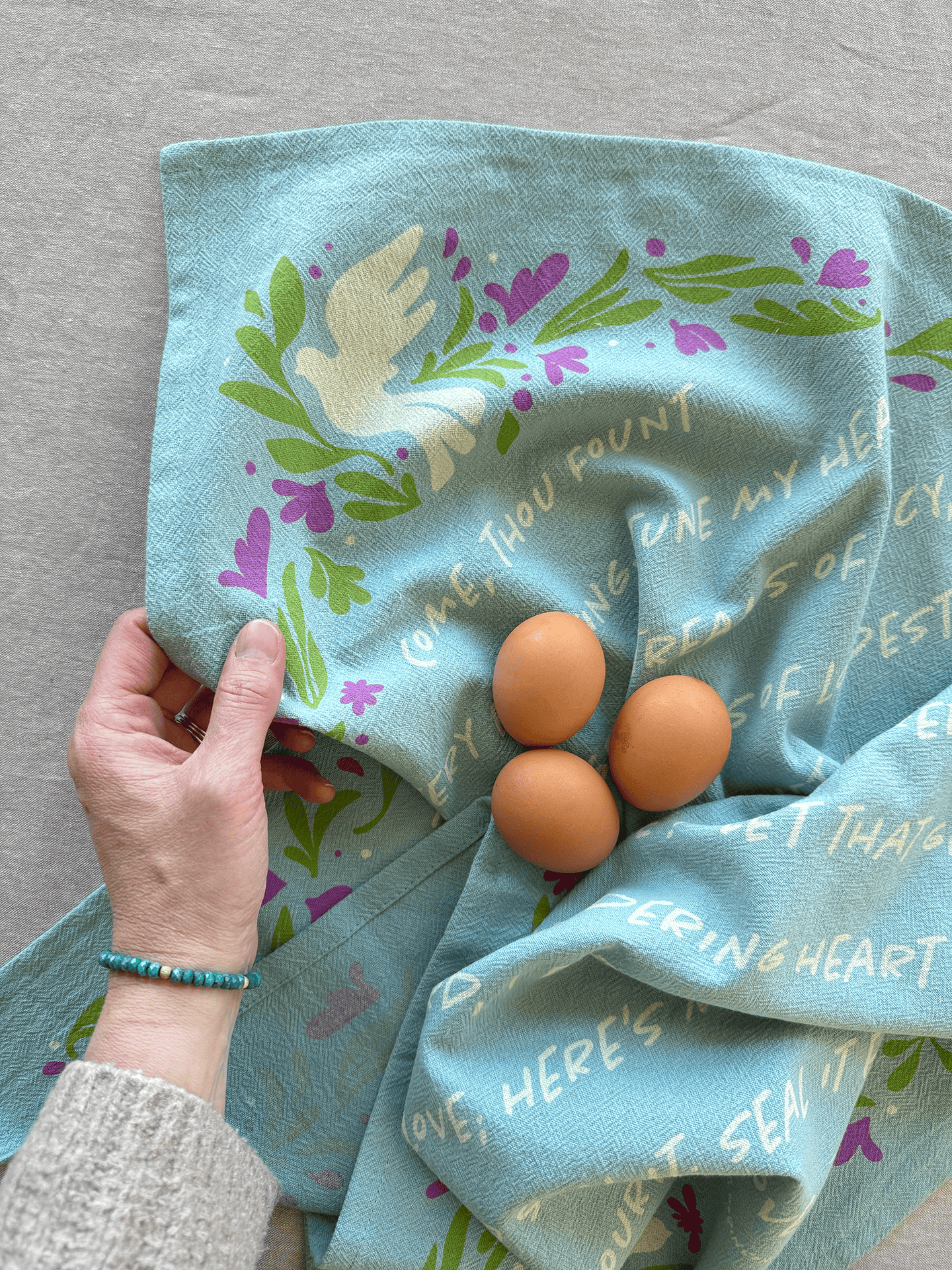 These oversized, soft, and oh-so-happy tea towels are inspired by beloved hymns that bring warmth to your heart and home. Whether you're whipping up a holiday feast or looking for the perfect heartfelt gift, these towels are designed to add both inspiration and joy to your kitchen.