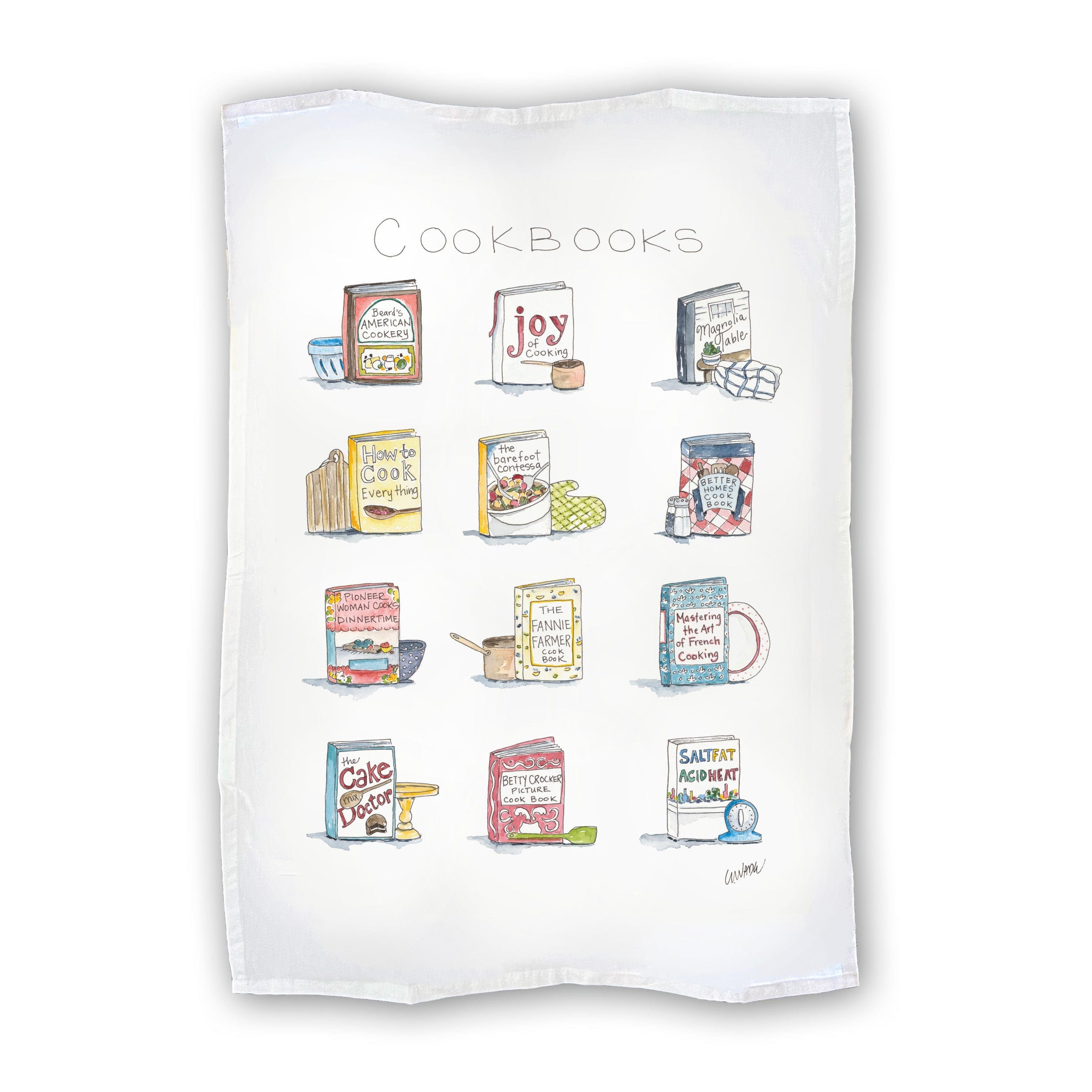 My original watercolors available in full size, charming flour sack tea towel. Designed in Nashville, TN. A great gift!
